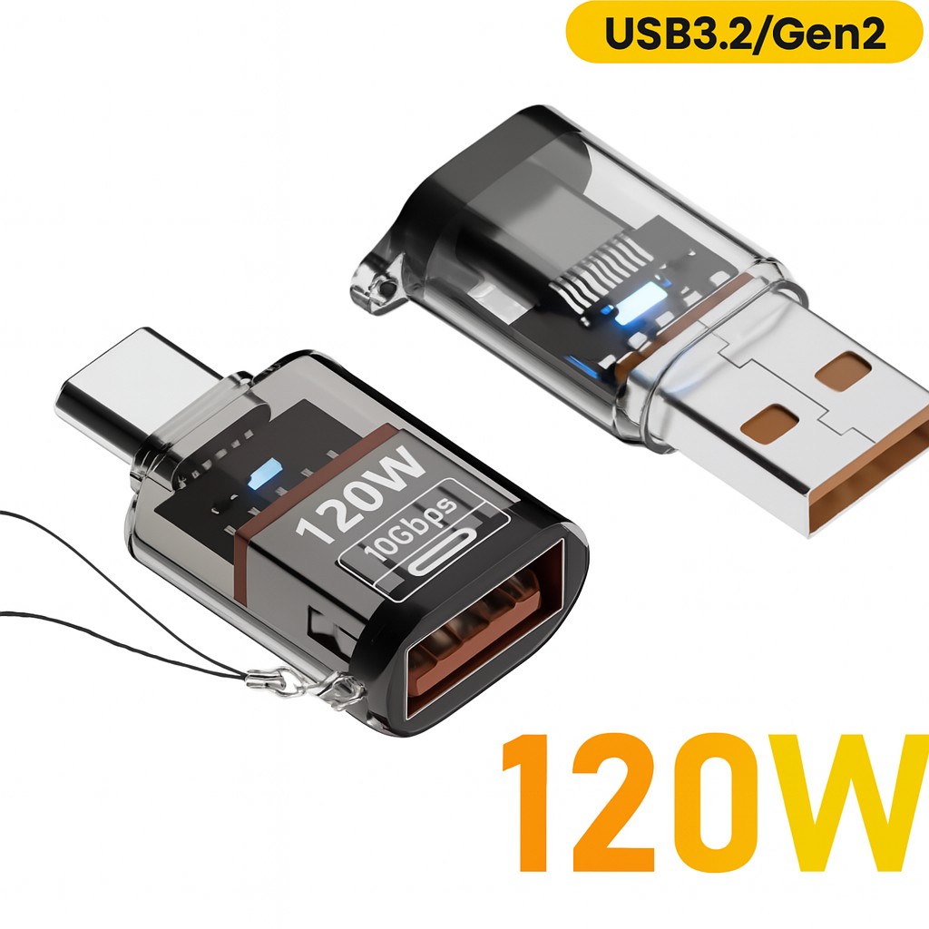 120W Type C To USB A Adapter | USB 3.2 to Type C Fast Charging Connector For iPhone 15 16 Macbook iPad